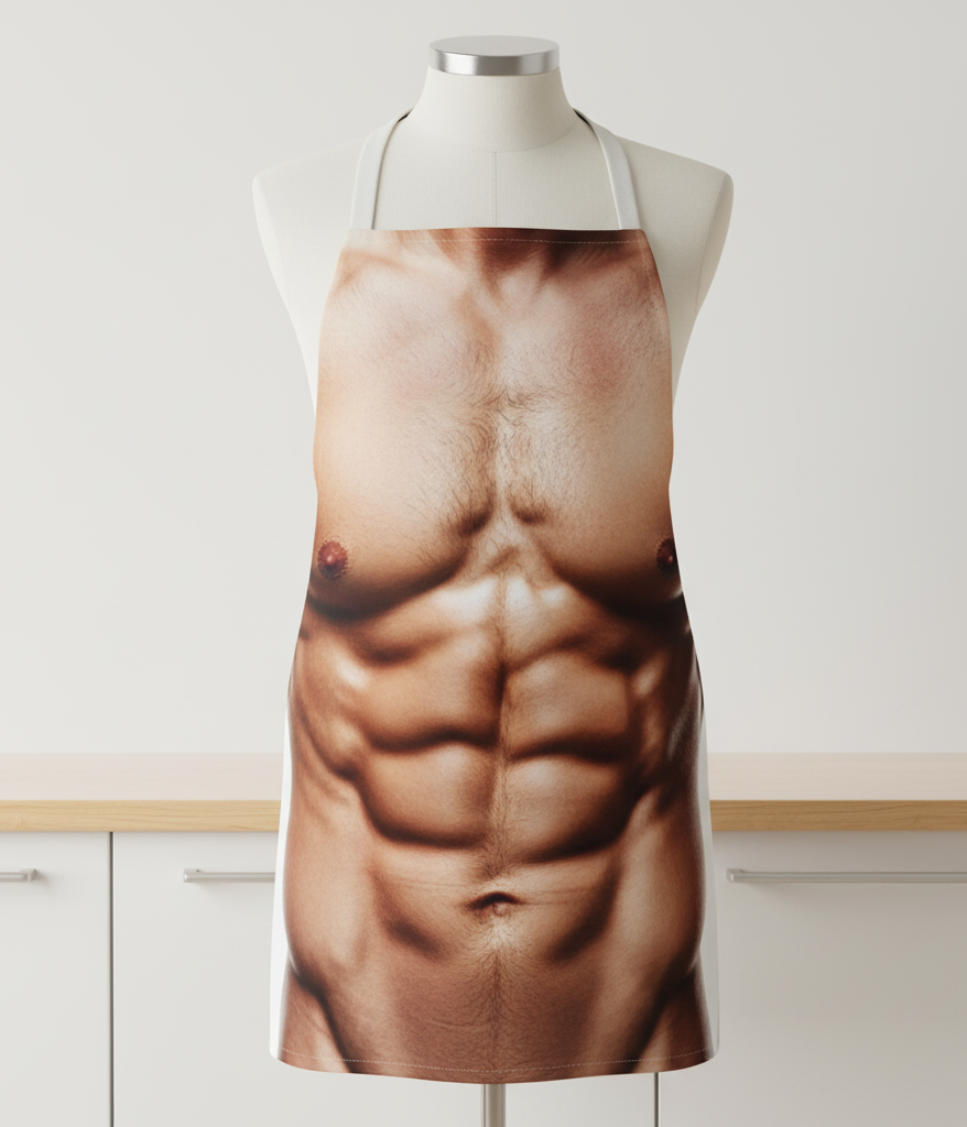 Rompe el molde culinario y lleva el humor a la cocina con el delantal musculoso. Con un diseño hiperrealista de torso fitness, transforma cualquier sesión de cocina en una experiencia de fuerza y actitud. Pensado para hombres con estilo, sentido del humor y muchas ganas de sorprender: sea parrilla, barbacoa o simplemente una cena especial, conquista la cocina como el macho alfa que eres.